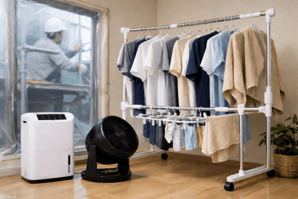 • 室内干しスペースを確保:除湿機やサーキュレーターを活用