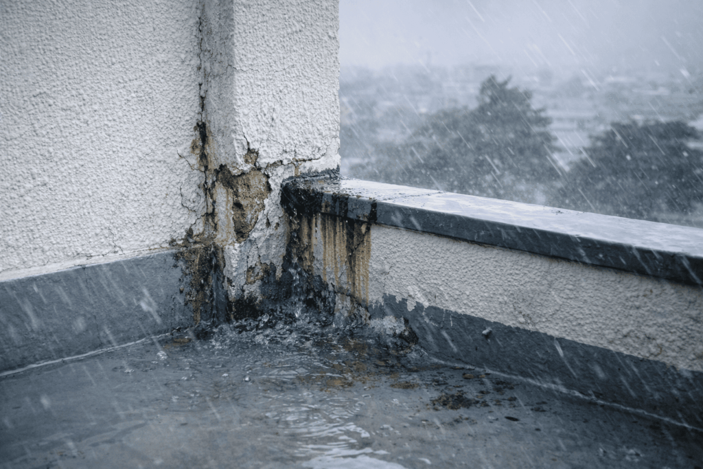 夏場の高湿度や台風による雨風で防水層が傷みやすい