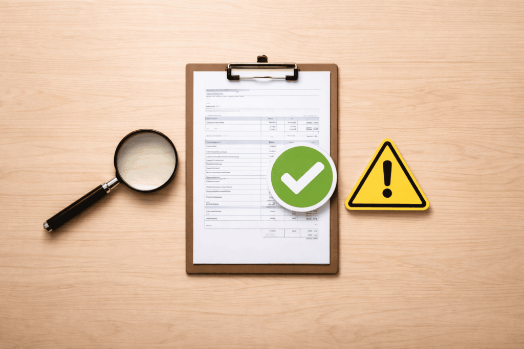 見積書に「塗料名」「保証年数」「工期」「総額」が明記されているかを確認しましょう。